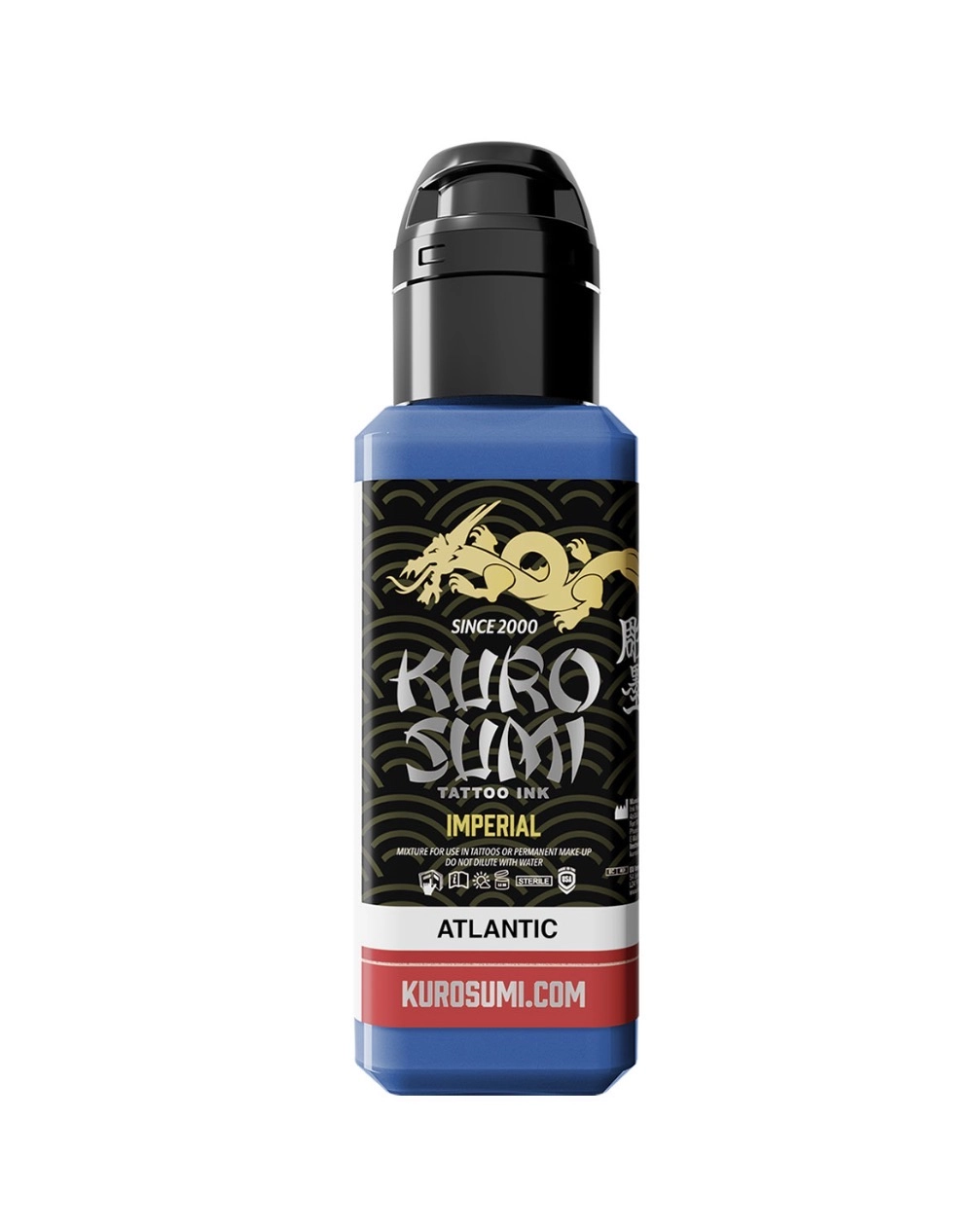 Kuro Sumi Imperial - profesjonalny tusz do tatuażu premium, stworzony dla maksymalnej stabilności pigmentu i intensywnego, czystego koloru. Formułę Kuro Sumi opracowano pierwotnie w Japonii. Odcień Atlantic zapewnia równomierne krycie i doskonałe nasycenie skóry.