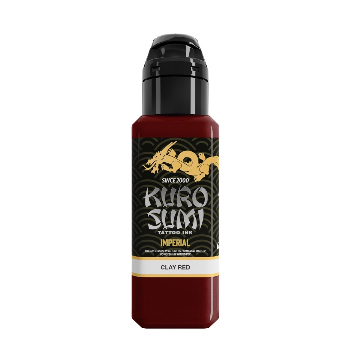 Kuro Sumi Imperial - profesjonalny tusz do tatuażu premium, stworzony dla maksymalnej stabilności pigmentu i intensywnego, czystego koloru. Formułę Kuro Sumi opracowano pierwotnie w Japonii. Odcień Clay Red zapewnia równomierne krycie i doskonałe nasycenie skóry.