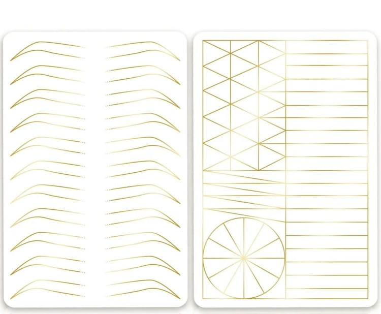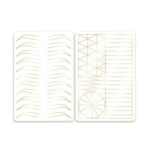 Z jednej strony znajduje się 11 par brwi w konturze, o nowoczesnym i estetycznym kształcie – idealne do ćwiczenia precyzji, symetrii i prowadzenia linii.